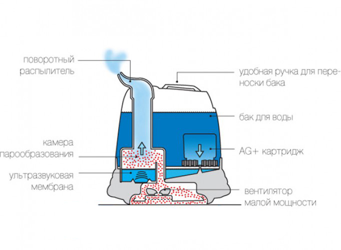 Вода под воздействием ультразвука расщепляется на мельчайшие частицы. Микроскопические капли воды образуют облако пара, проходя через которое, сухой воздух увлажняется и подается в помещение. Ультразвуковой увлажнитель оснащен многоступенчатой системой очистки воды. Сменный катридж AG+ умягчает воду, а функция пастеризации при 80°С гарантирует чистоту исходящего пара и повышает эффективность увлажнения. U7135 самостоятельно следит за состоянием "собственного здоровья": в увлажнителе предусмот- рен датчик загрязнения. Информативный ЖК-дисплей прибора значительно облегчит его эксплуатацию, отображая режим работы, текущую и заданную влажность в помещении.