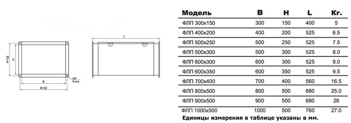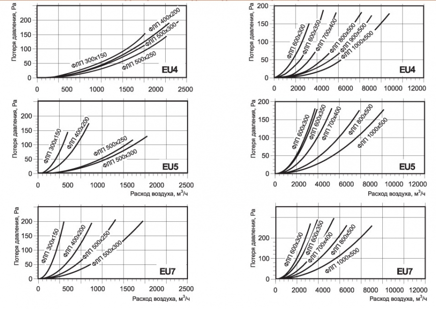 Корпус и крышка фильтра изготовлены из оцинкованной стали. Крышка фильтра крепится к корпусу простыми защёлками, корпус с обеих сторон снабжён фланцами, что обеспечивает лёгкое подсоединение к воздуховодам или другим компонентам систем вентиляции. Фильтрующий материал выполнен в виде кассеты из синтетического волокна, имеющего класс очистки EU4, EU5, EU7. Устанавливается в горизонтальном или вертикальном положении. При вертикальном монтаже воздушный поток должен быть направлен вниз так, что бы карманы фильтра не сминались. Рекомендуемое конечное аэродинамическое сопротивление для фильтров EU5-200 Па, для фильтров EU7-250 Па. Под навесной крышкой находится быстроразъёмный фиксатор, позволяющий легко заменить фильтр.