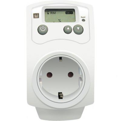 Програмируемый прибор контроля влажности. Позволяет поддержать заданный уровень влажности в помещении, регулируя работу увлажнителя воздуха (автоматически включая и отключая его по мере необходимости). Прибор способен работать в непрерывном режиме. ЖК-дисплей отображает все основные параметры процесса. Номиналь- ная влажность воздуха может быть задана в диапазоне от 10 до 90 %. Максимальная коммутируемая нагрузка 3680 Вт (16А).