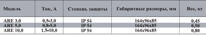 Однофазные промышленные тиристорные регуляторы скорости серии ARE. Корпус регуляторов выполнен из АБС пластика и имеет выключатель на боковой панели. Влагостойкий корпус из АБС пластика позволяет использовать это устройство в любых (например, с повышенной влажностью) условиях: на кухнях или в ванных комнатах. В регуляторе предусмотрена возможность установки минимального выходного напряжения (внутри корпуса иметься установочный регулятор). Регулирование скорости электродвигателей осуществляется вручную с помощью выбора требуемого положения ручки регулятора. Выходное напряжение плавно изменяется в диапазоне 0–230 В. Рекомендуется подключать к регуляторам электродвигатели со встроенными термоконтактами тепловой защиты, через которые на двигатели подается питающее напряжение. Если двигатель не имеет термоконтактов, необходимо установить отдельную тепловую защиту! Входная цепь регуляторов защищена плавким предохранителем. Все модели снабжены дополнительным (нерегулируемым) выходом 230 В, 1 фаза.